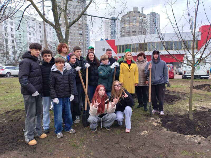За участі учнів ліцею 216 у сквері на Оболонській площі висадили 60 красиво квітучих кущів ...